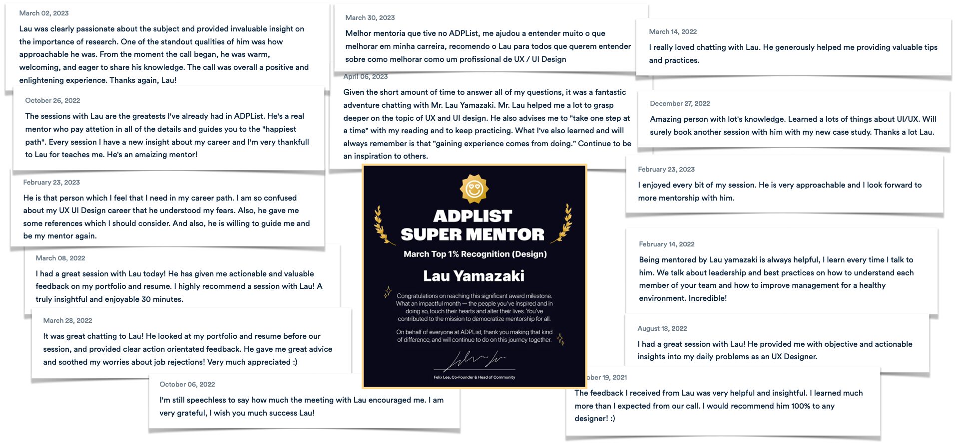 In the education field, I am a UX Design Mentor and have been through significant mentorship programs that serve UX Designers around the world (IDF-Interaction Design Foundation, ADPList.org, among others). As a professor, I had the honor to teach and learn with more than 1,800 students, in over 20 countries, between undergraduate, postgraduate, and mentorships.